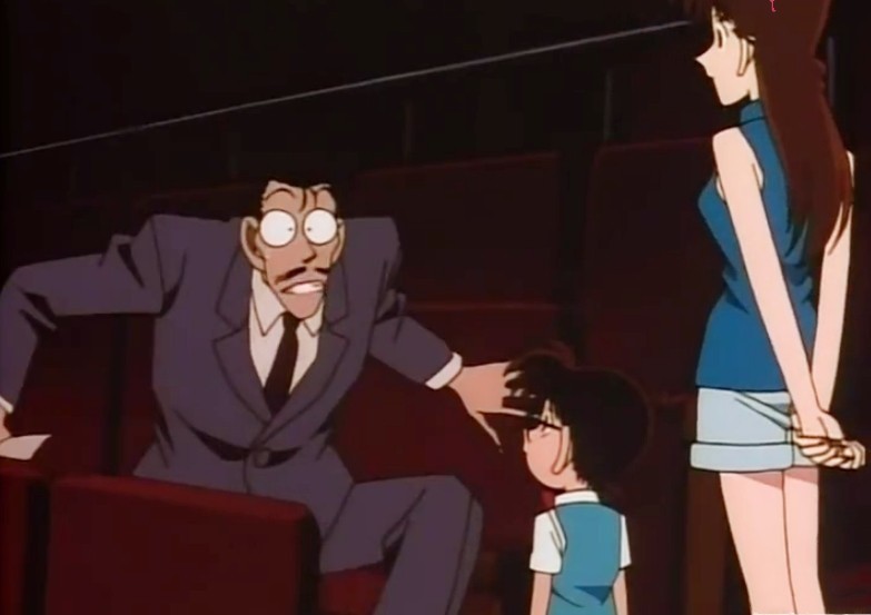 小五郎的师傅盐田老师一登场就出现了骚扰女演员的现象,在柯南一行人到达案发现场以后,这老头子自己就跑没影了,直到更衣间里发出了女生的尖叫声,所有人赶到才发现原来他摸了人家剧组的女主角,当场所有人瞬间投去了鄙夷的眼光,而这个老头丝毫不受影响,转手就把魔爪伸向了小兰。