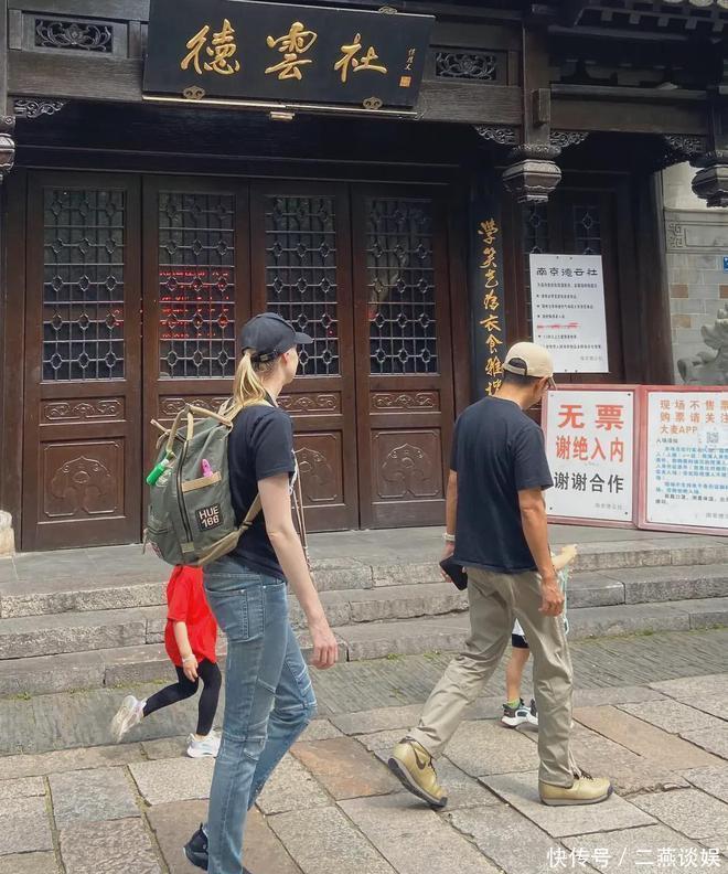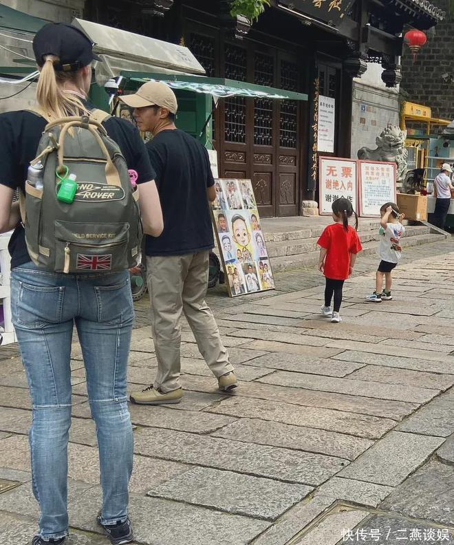 偶遇撒贝宁一家四口出游,让李白背包自己像大爷,龙凤胎好可爱!