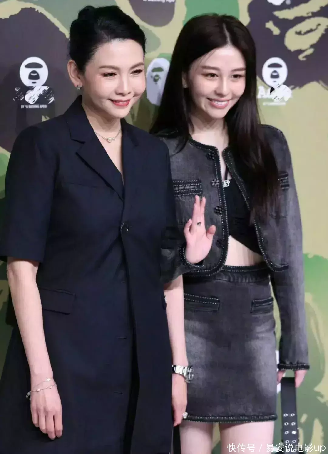 23岁的沈月在今天晚上的活动中,身穿一套灰色牛仔套装,气质十分出众,脸上的胶原蛋白满满,整个人的眉眼和五官像极了妈妈,母女俩就像是从同一个模子里刻出来似得。