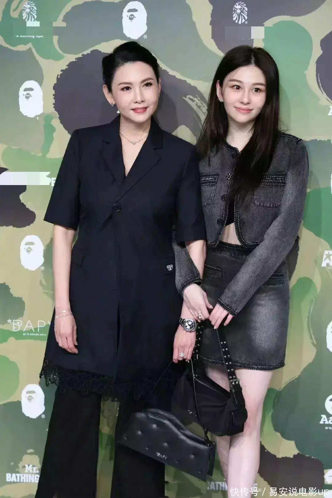 在这次活动中,邱淑贞跟沈月一同亮相之后,何超欣还跟沈月一同亮相。不同于沈月的文静贤淑,何超欣身穿一件深浅不一的蓝色花纹外套,搭配一件牛仔短裤,脚踩一双运动鞋,整体的状态相当的松弛。