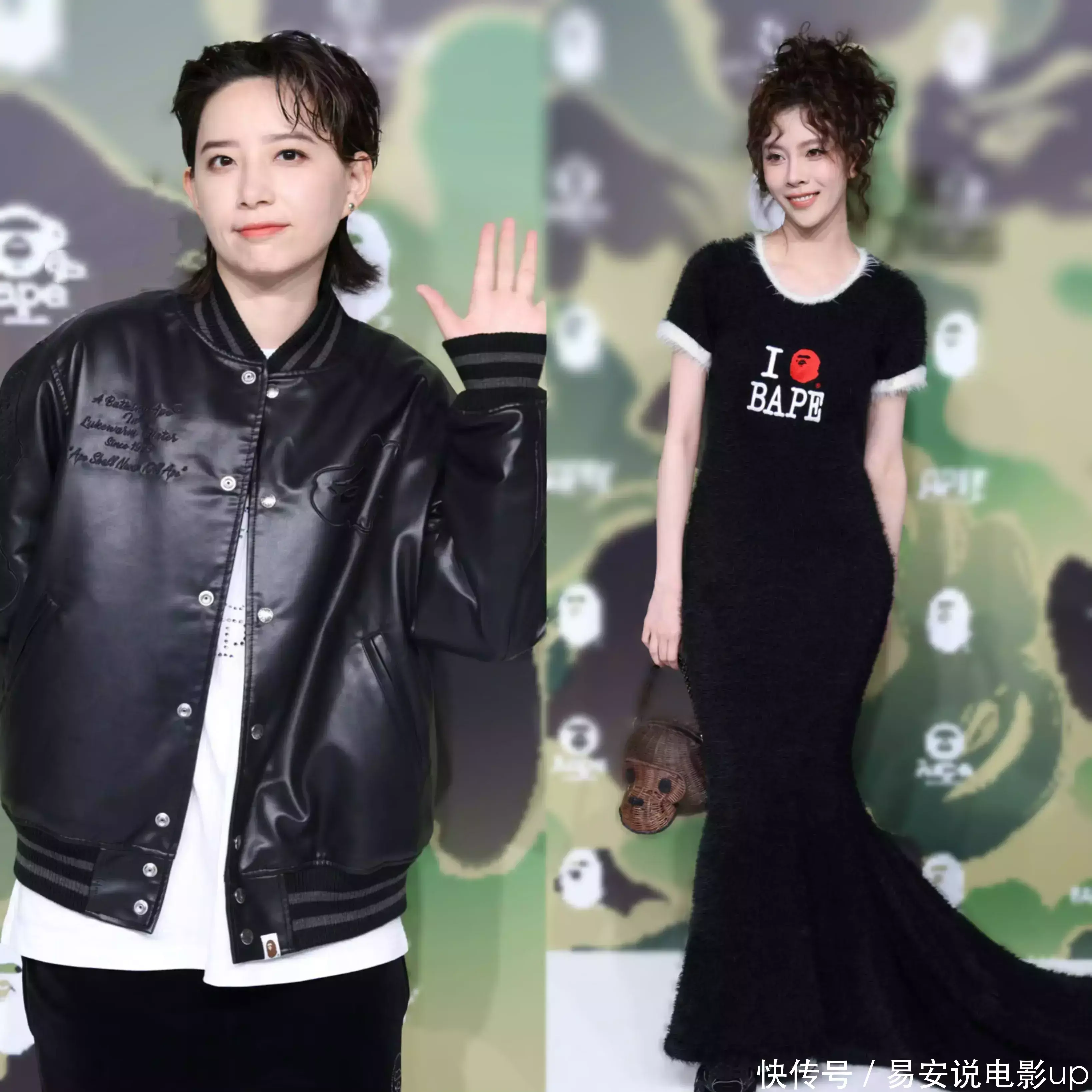 李斯丹妮身穿一件黑色皮衣,宋妍霏身穿一条黑色的针织长裙搭配一头羊毛卷盘发现身了活动现场。