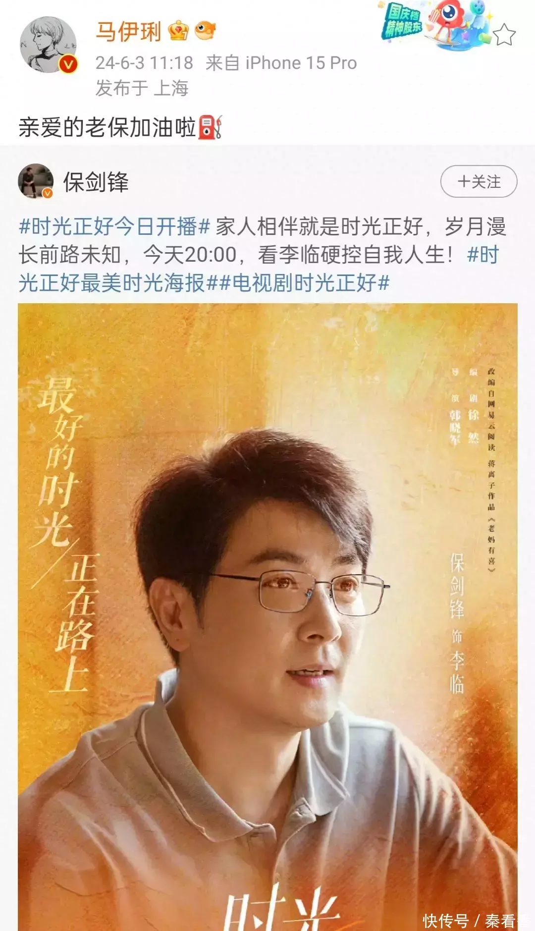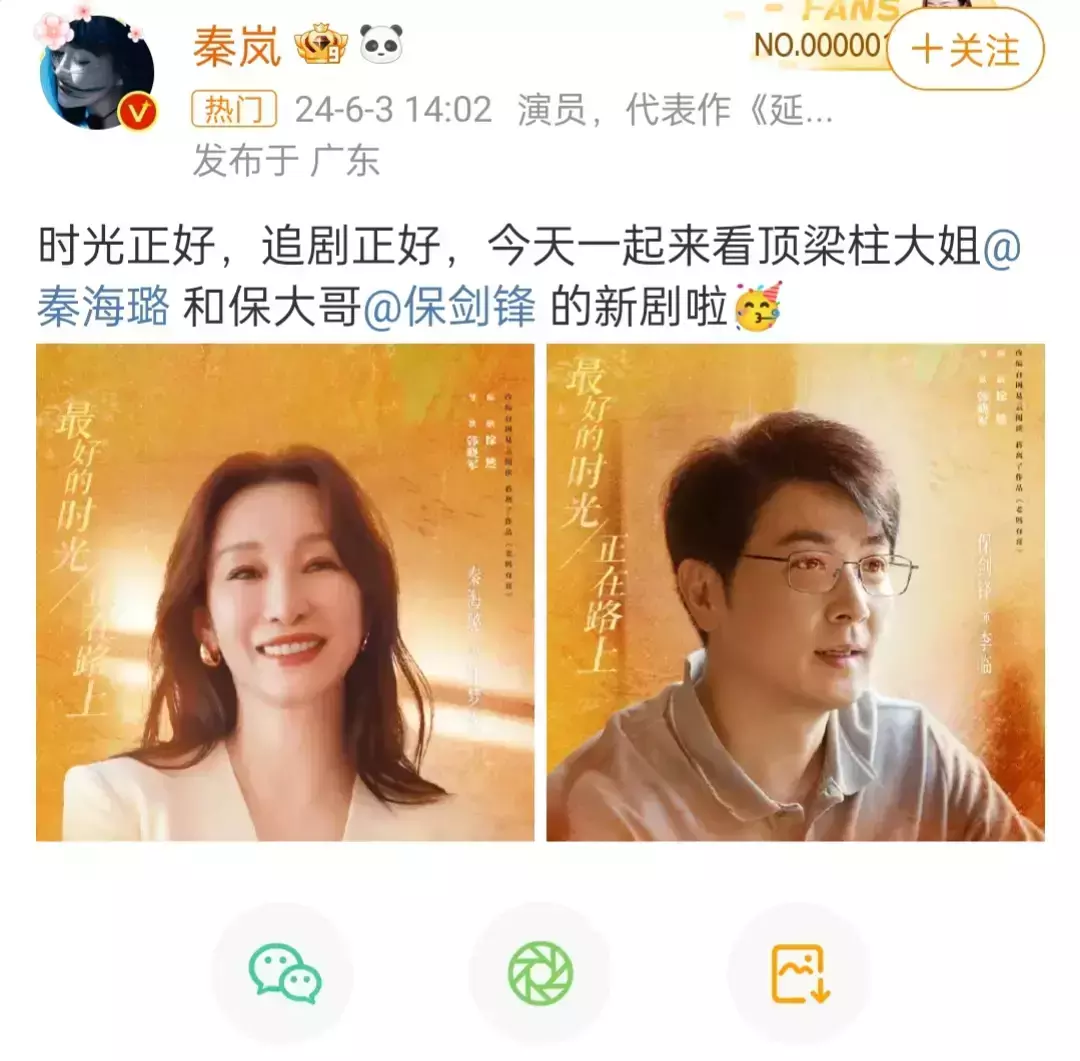 秦海璐与保剑锋时光正好生二胎,好友马伊琍,秦岚,成龙祝福转发