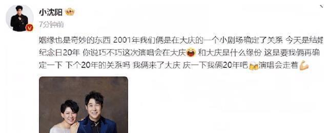6月26日,小沈阳高调发文,庆祝自己和妻子结婚20周年!