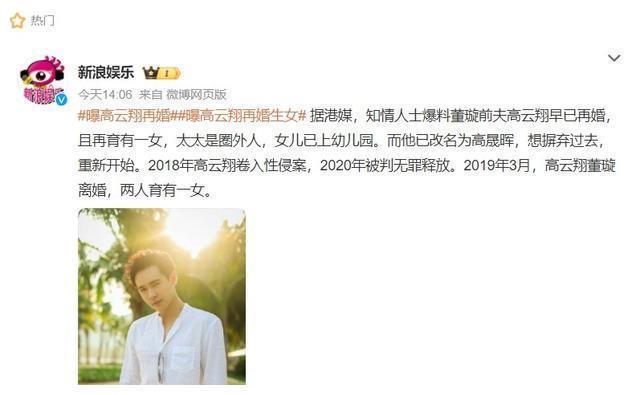 高云翔被曝已低调再婚,并有了一个女儿,与董璇复婚彻底无望了