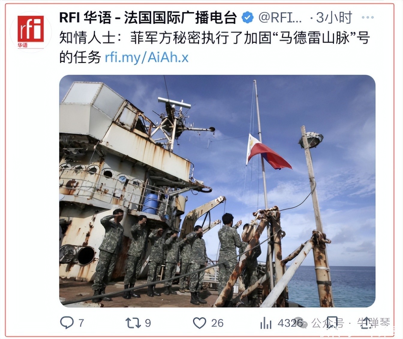 我看到,即便是法国国际广播电台这样的外媒,也忍不住“揭发”说:“熟悉情况的人士表示,菲军方秘密执行了加固‘马德雷山脉’号,以延长其使用寿命。”