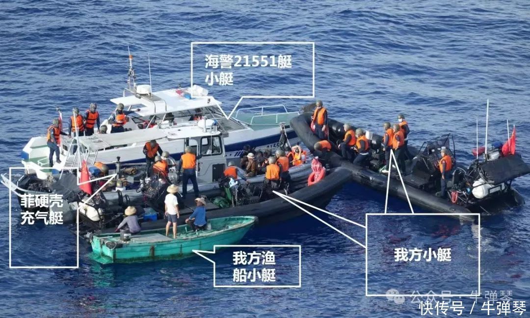 最近的海上摩擦,发生在我仁爱礁海域。菲律宾船只违背承诺,派出1艘运补船、2艘充气艇非法闯入,企图向非法“坐滩”军舰运送物资,我方自然坚决阻止。