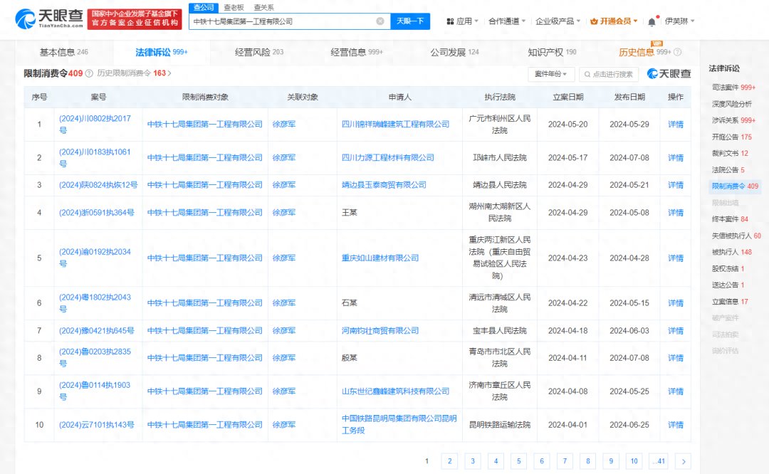 中国铁建多家公司成失信被执行人,央企称业主方拖欠还款。
