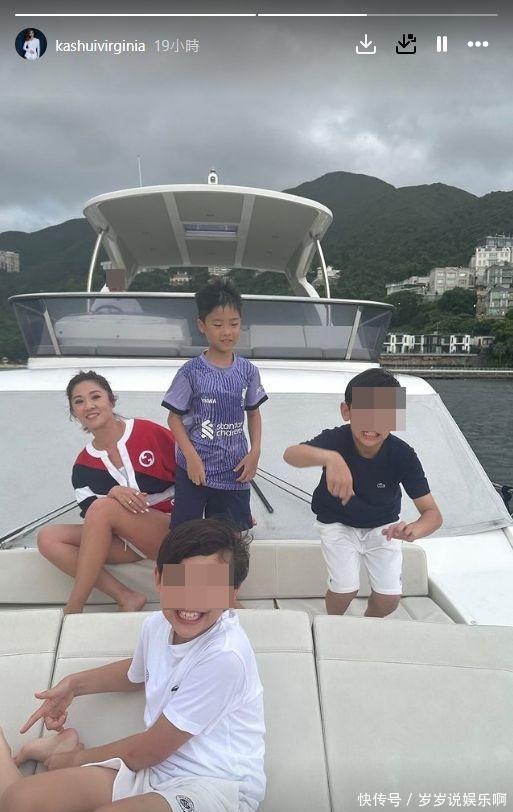 50岁港姐为9岁儿子庆生游乐场游艇齐上阵,与70岁丈夫同框像父女