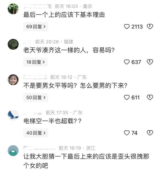 电梯超载停在原地10多分钟,全员犟种都不愿下电梯,路人的话亮了