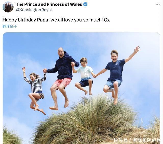 凯特发三娃新照!和爸爸跳高高,没见过这么有活力的王室家庭照!