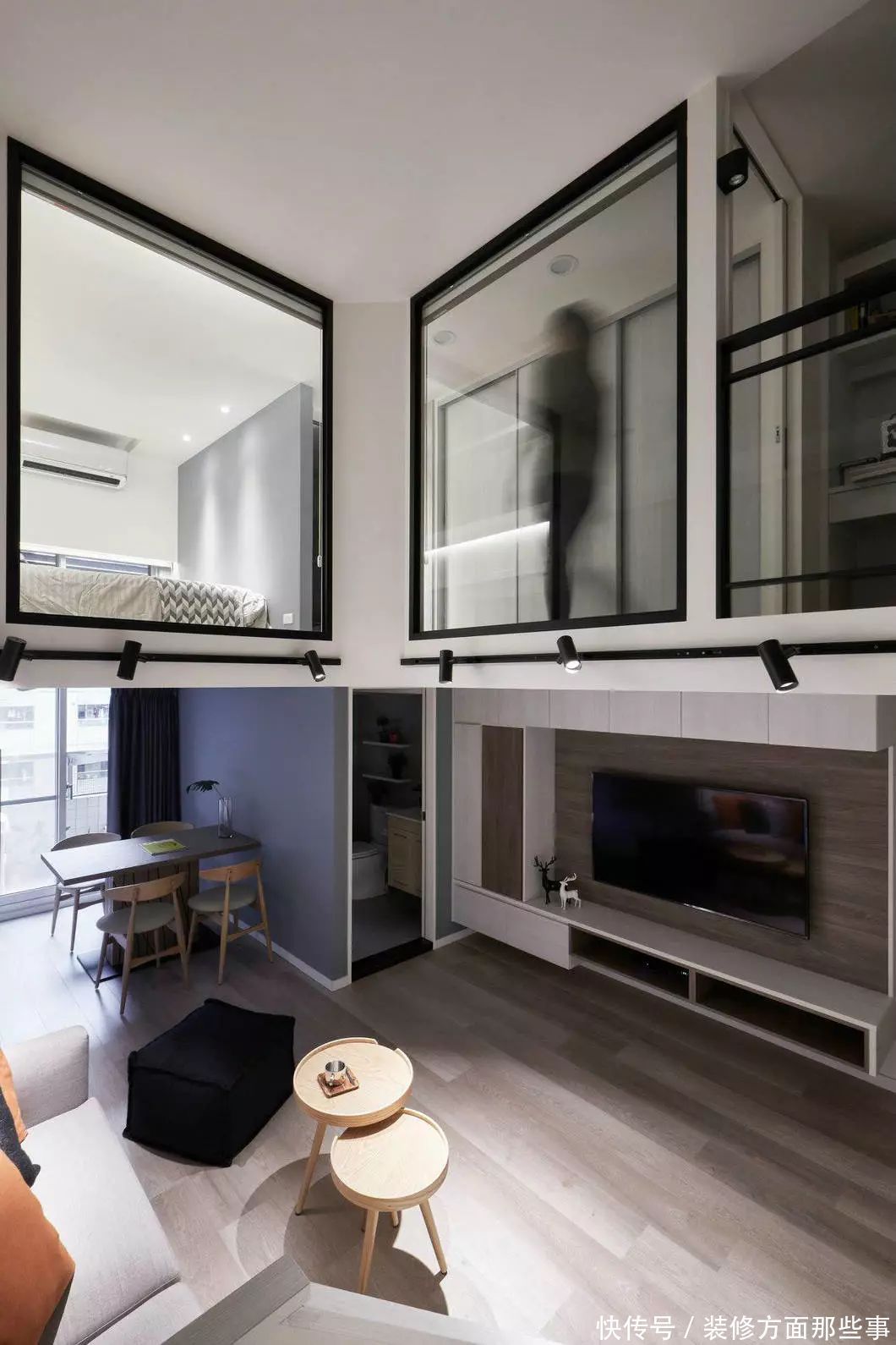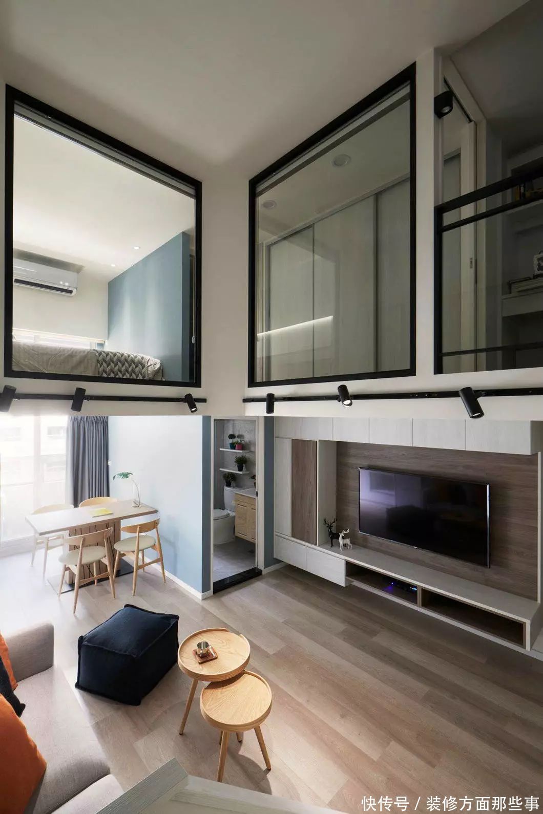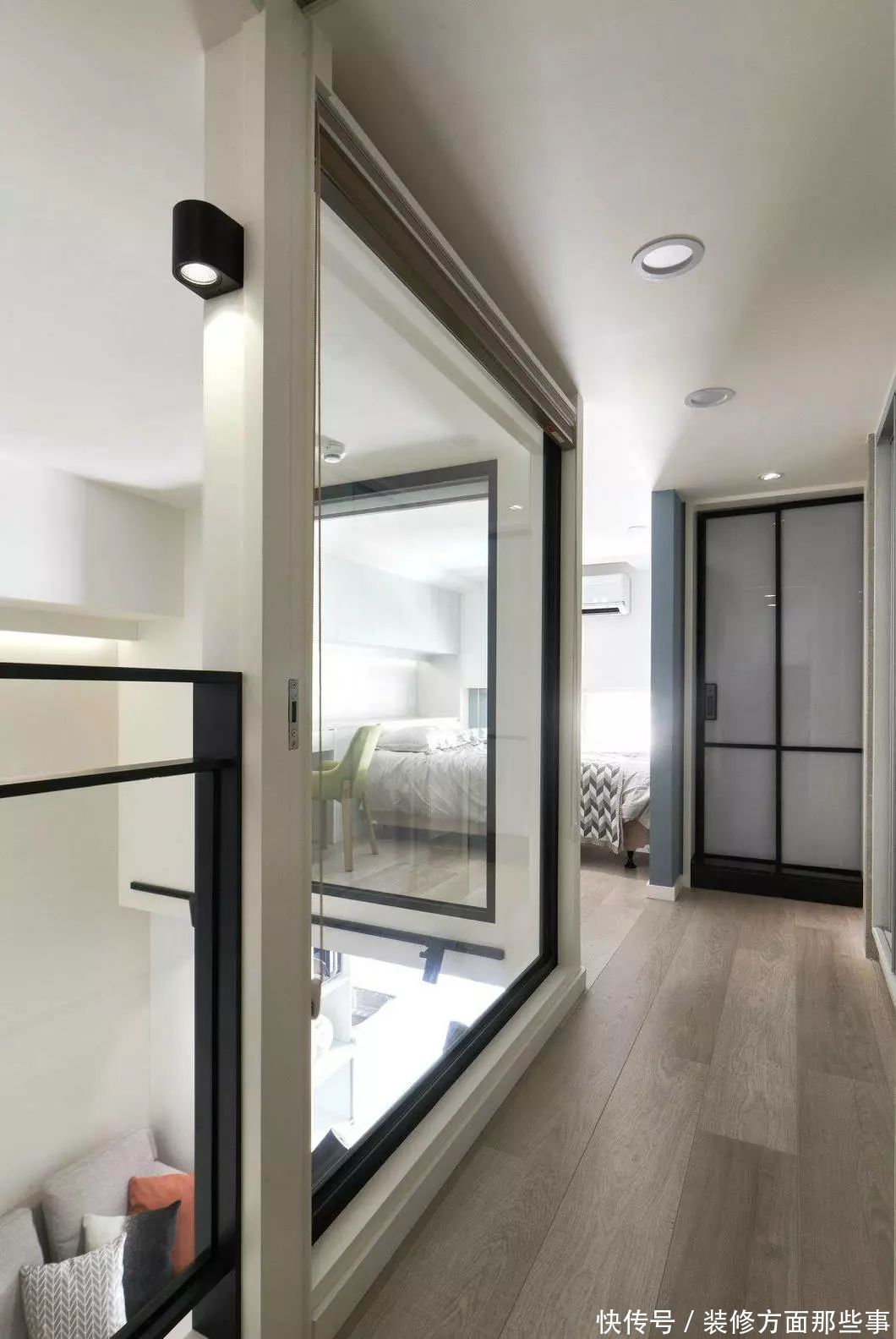 loft的二层设计,基本上都是玻璃窗,这样可以让光线充分的进入每一个空间!