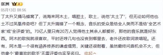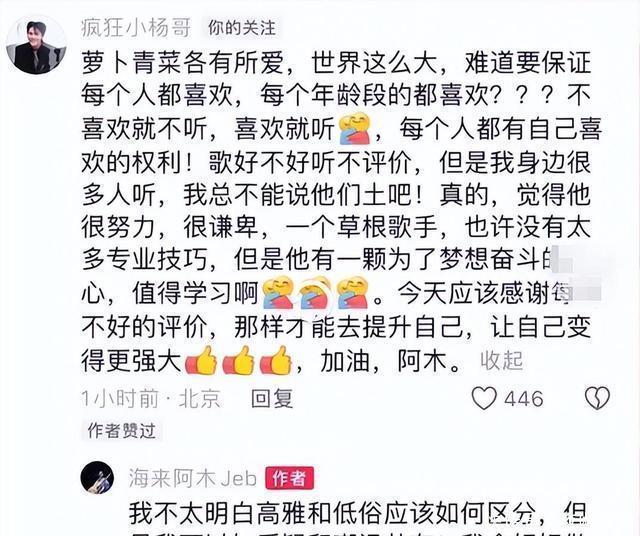 而支持丁太升的人呢,就觉得海来阿木的音乐不够时尚前卫,对他有着更高水平的期待。