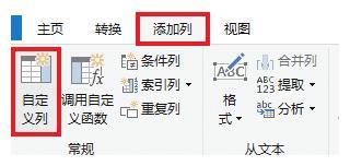 5.选择菜单栏的“添加列”-->“自定义列”