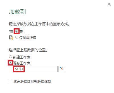 11.在弹出的对话框中选择“表”-->选择“现有工作表”及所需上传至的位置 -->点击“加载”