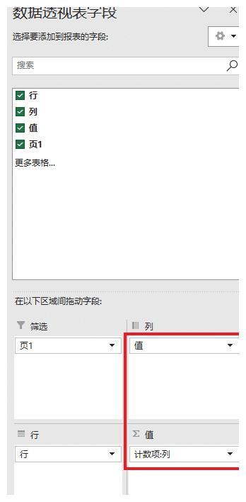 5.将“列”和“值”的字段对调一下。