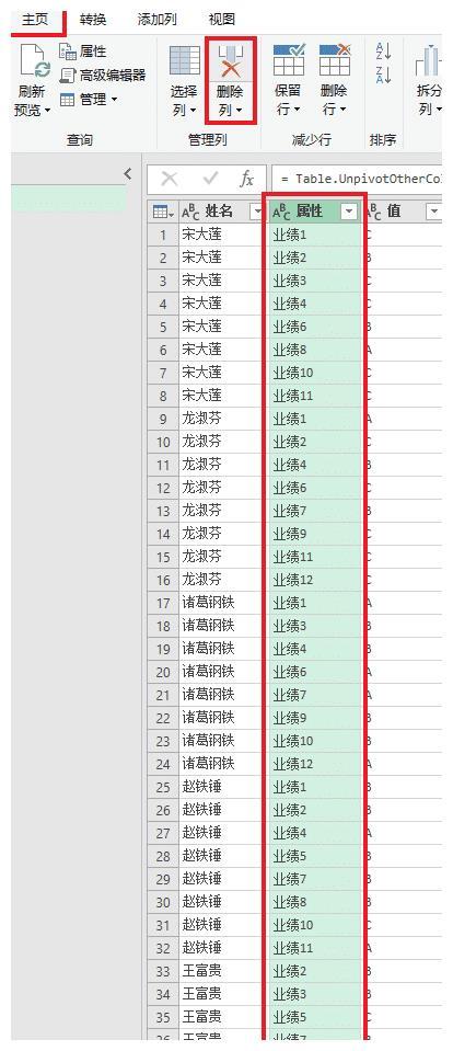 4.删除“属性”列。