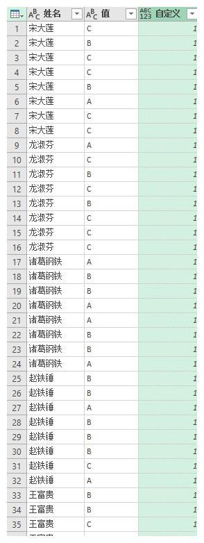 右侧绿色的表格就是最终统计结果。