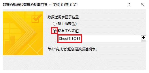 4.选择“现有工作表”及所需放置的位置 -->点击“完成”