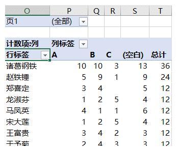解答网友提问。在一个二维表中,如何分组计算值区域中每个值的个数?