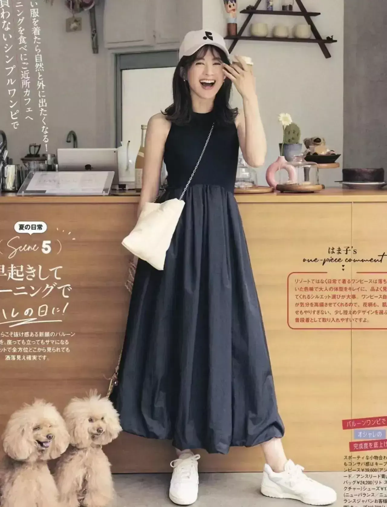 最为经典的就是黑白搭配,基本上不会出错,例如下面这一套创意示范,黑色的无袖连衣裙,脚踩白色运动鞋,头上带的白色鸭舌帽,显得活力四射。