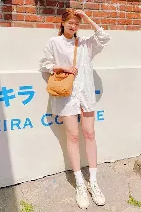 或裙子的长度尽量到大腿中间的位置,而且这时候选择小白鞋,加上堆堆袜,这样的搭配更个性。