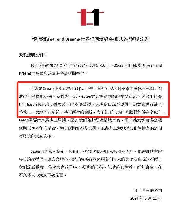 突发!陈奕迅中暑休克,晕倒致脸上骨裂缝30针,曾差点不能当父亲