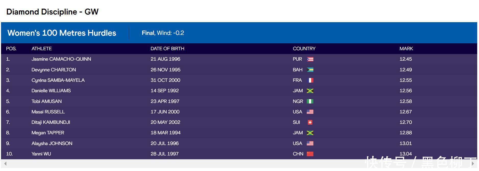 吴艳妮13秒04获最后一名!国际赛场见证差距,冠军成绩12秒45吓人