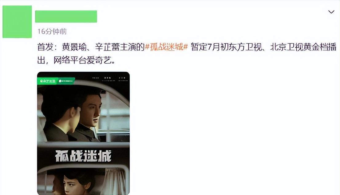网传40集谍战大剧《孤战迷城》将于7月初上星东方北京两大卫视,桃厂同步播出。阵容雄厚,实力不俗,毫无疑问,该剧将会带领谍战题材,走向巅峰王座!