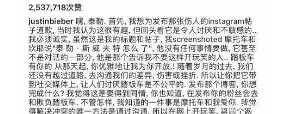 只不过这次迟来的道歉,锚地对于比伯来说根本没有任何的衬诚意,不仅语气语调轻浮,而且毫无悔改之意。话说他要是国内小生这样放飞自我不知道该被骂了几轮了。明明知道这件事情是霉霉最讨厌的事情,现如今还拿出来再度揭伤疤,比伯的情商真的是低到离谱。 当然比伯这么做目的是什么暂时还不得而知,只不过他做出类似的事情也不是一次两次了,很多时候这种无厘头的作风虽然能让年轻网友觉得他很接地气,没有距离感。但是做得多了,难免让人厌恶。