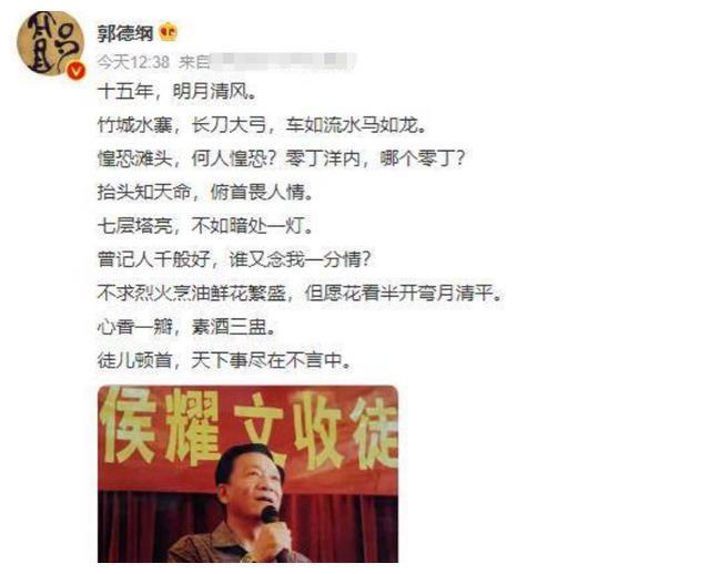 郭德纲因此也接到了更多的资源,就在那次与于谦一同前往安徽录制节目时,他得知了师父侯耀文去世的消息。