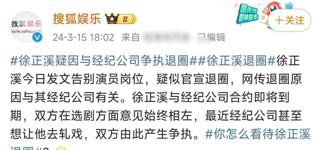 徐正溪退圈原因疑曝光!与经纪公司有争执,不愿轧戏圈钱最终崩溃