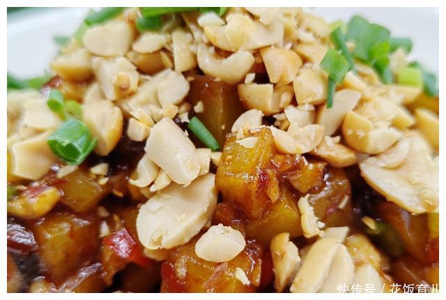 7、把压成碎粒的花生米撒在上面最后把小葱花也放在上面点缀这样一道酸辣香甜好吃下饭的美味佳肴就做好了。