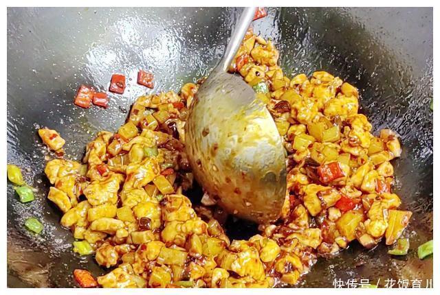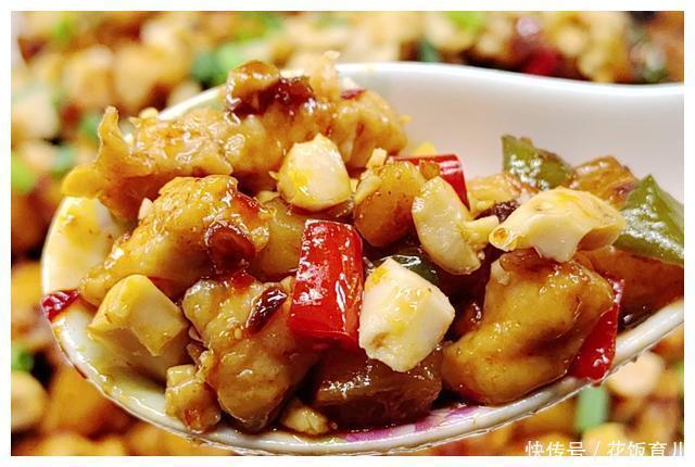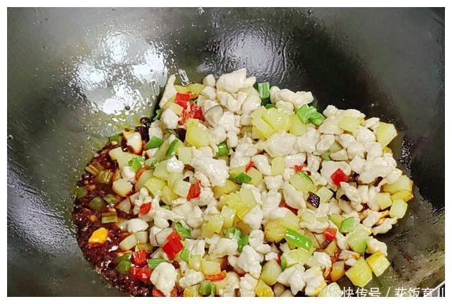 3、除了料头外所有的食材都经过油锅可以说都已经熟了所以在第二次下锅的时候煸炒的时间久就不宜太久否则会失去外酥里嫩的口感。