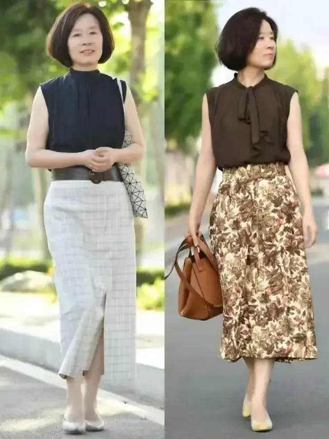 这个春夏季节,中年女性可以选择一件无袖的衬衫,上衣搭配上高腰收腰的半身裙,脚上踩了一双尖头的平底鞋就够了。