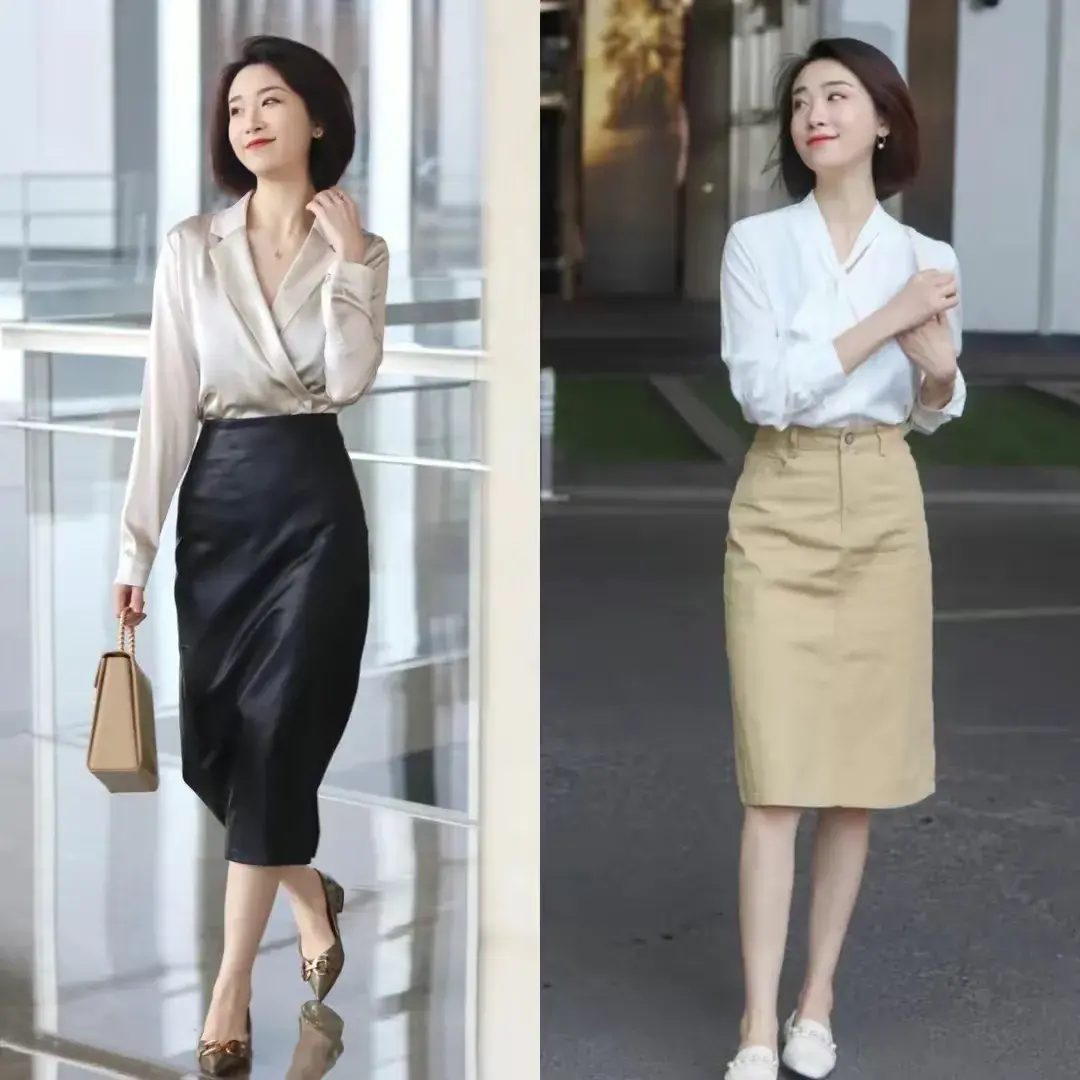 ⑤、梨形身材推荐选择直筒半身裙或者是包臀裙