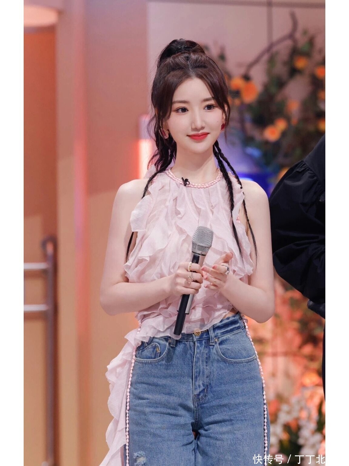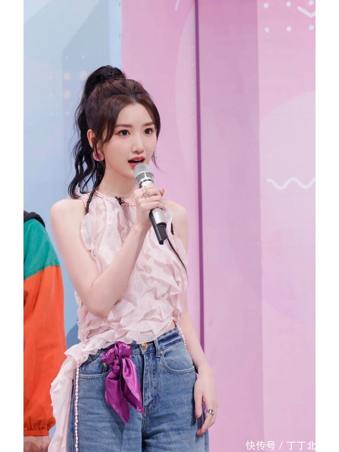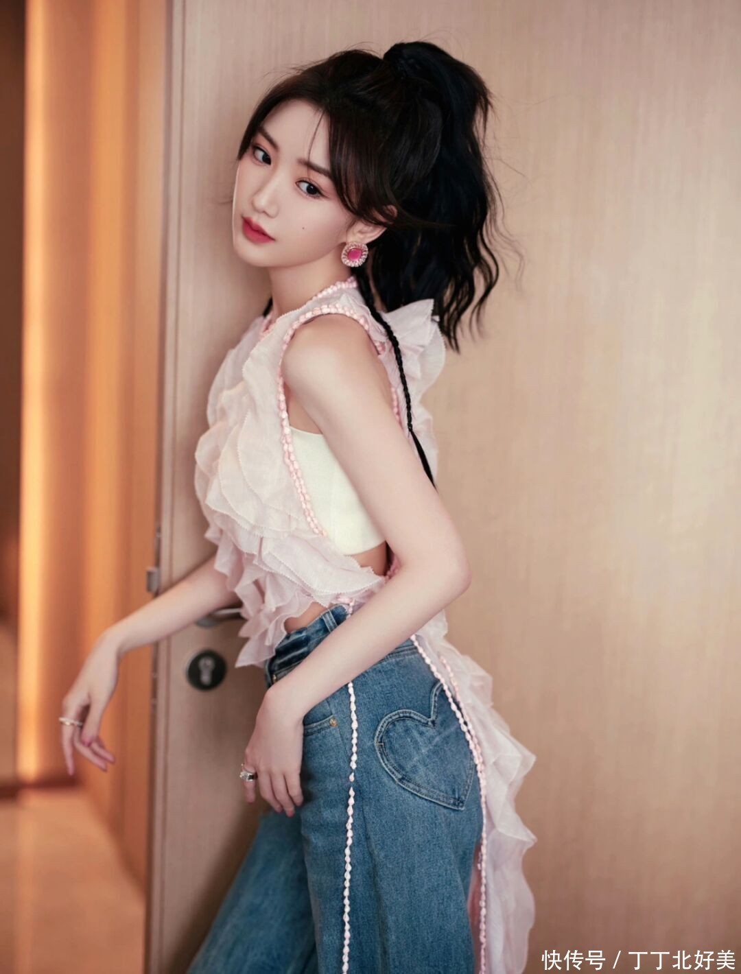 毛晓彤换了新发型更洋气!穿粉色背心+牛仔裤亮相,时髦又减龄