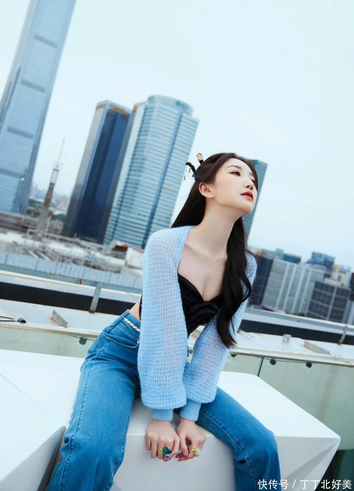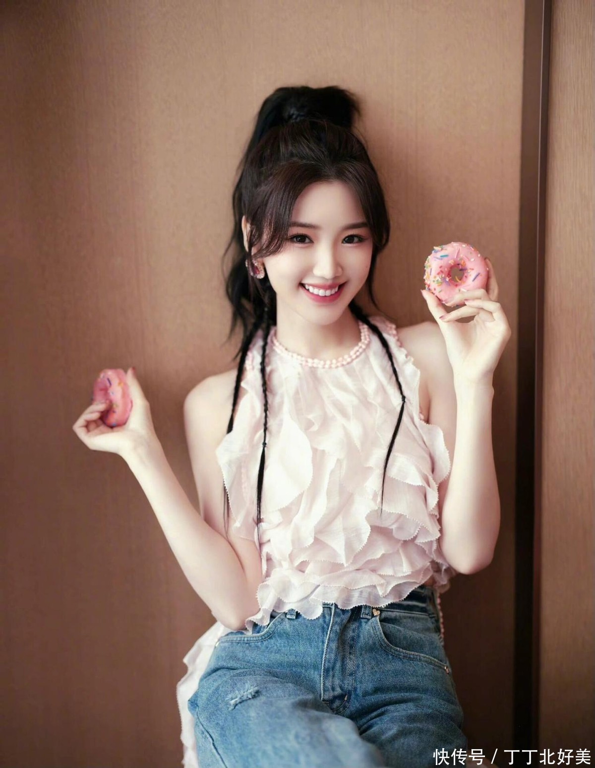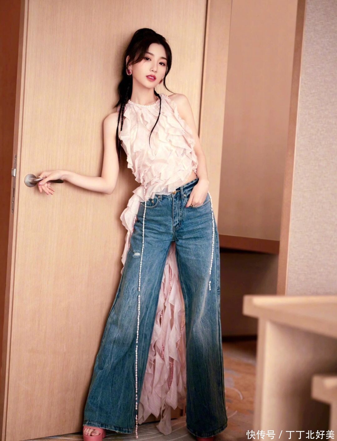 毛晓彤换了新发型更洋气!穿粉色背心+牛仔裤亮相,时髦又减龄