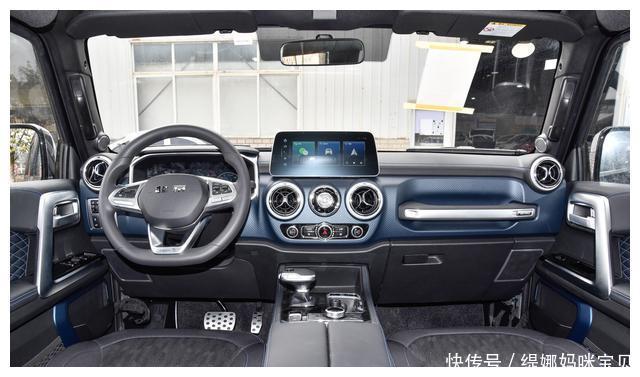 内饰方面,北京BJ40荣耀版的设计没有很明显的科技感,中控区的布局和样式也与上一代车型基本一致,副驾驶前方保留了副驾驶位越野拉手,很有越野车的特色。除此之外,新车还保留了不少实体按键和旋钮,配备了12.3英寸全液晶仪表和10.25英寸中控屏,支持语音识别控制、车联网、4G网络、OTA升级等常见功能。