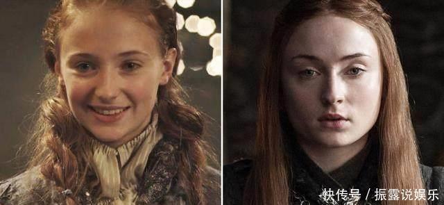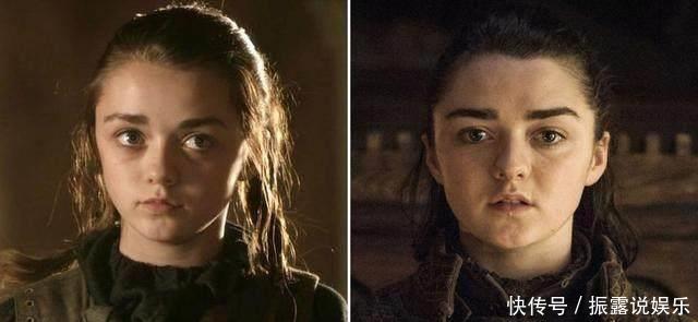 艾莉亚的变化也非常大,如果大家再次回过头来看第一季的话,可以看出那个时候的艾莉亚真的是古灵精怪。长相上来看,其实艾莉亚五官变化并不太大,唯一变化比较大的是脸变大了,眼睛不如小时候大了。