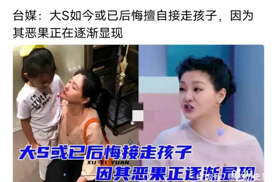 台媒:大S如今或已后悔擅自接走孩子!网友吐槽:已经哭晕在厕所