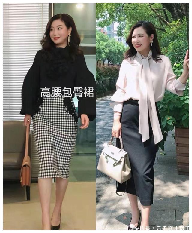 不管是穿衬衫配半身裙,还是穿西装裙,都需要注意高腰线的够了。高腰的过膝半身裙,经典的黑色系非常高级显瘦,黑色半身裙配白衬衫、也是高级耐看。