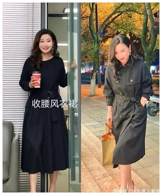 春天里的风衣,不仅可以作为一种帅气的外套来穿着。四五十岁的女人,想要提升气质美,还可以选择修身的风衣当作连衣裙来穿着。