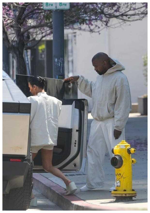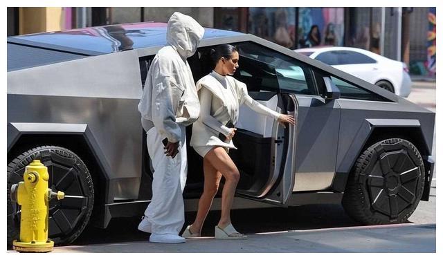 坎爷老婆规规矩矩穿衣了?一身白色不省布料超美,开赛博卡车超酷