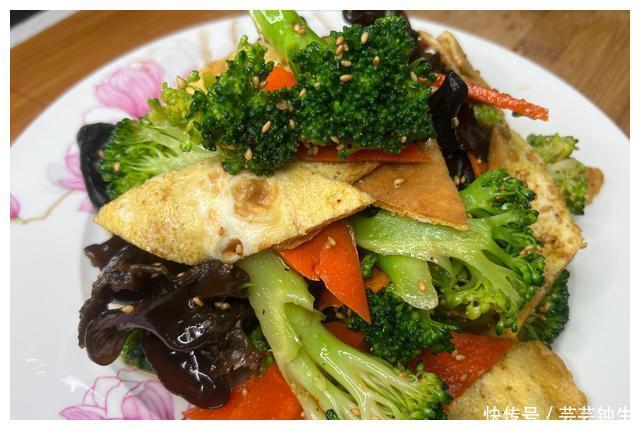 10分钟上桌的快手凉拌西兰花,加木耳,胡萝卜和鸡蛋,好看好吃