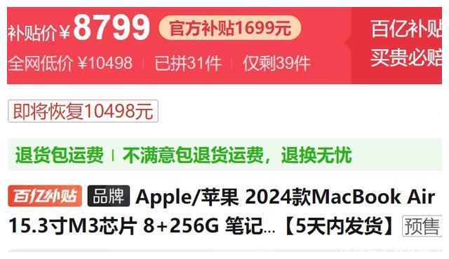 苹果“也不讲武德”,2024款MacBookAir首发直降1699元,很亲民