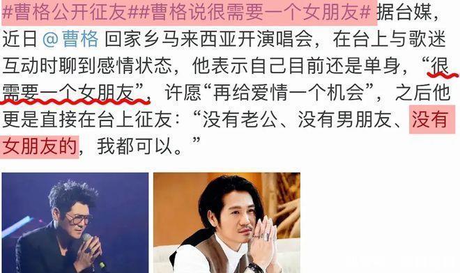 就在这个时候,曹格突然在社交媒体上公开征婚,引起了广泛的关注和讨论。