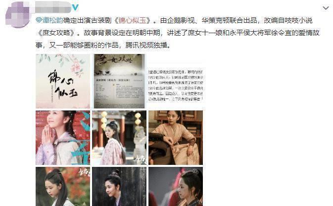《锦心似玉》未官宣,网曝谭松韵宋威龙再合作?爆款预定