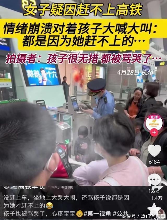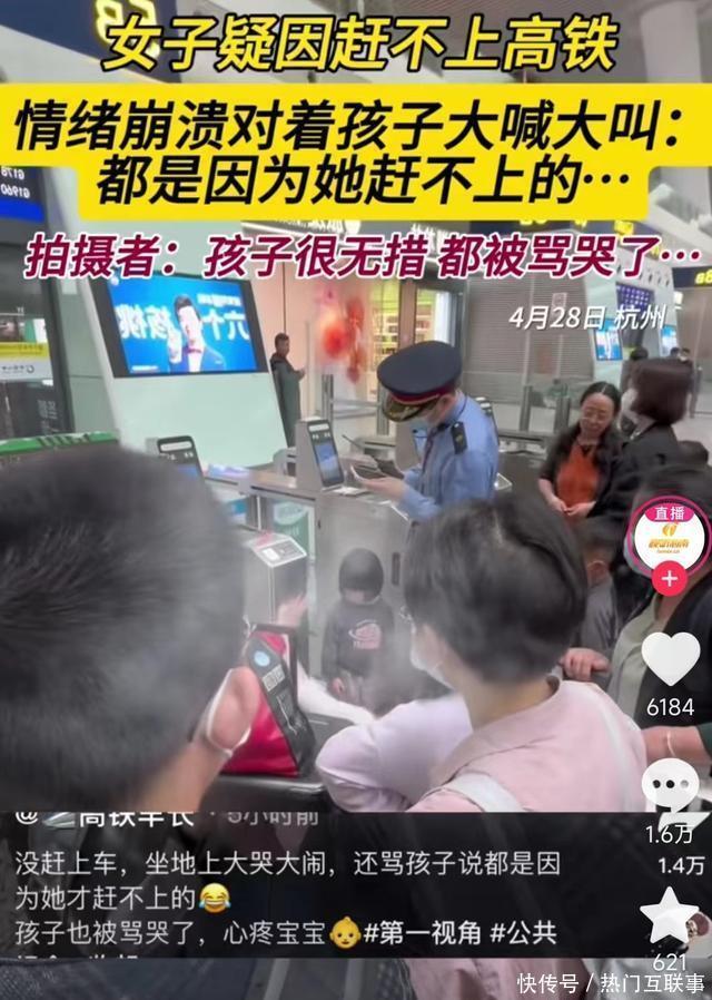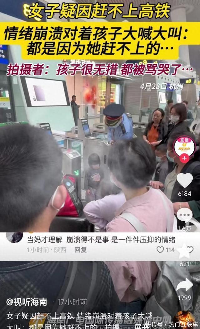 女子因赶不上高铁对着孩子大喊大叫,孩子吓哭,网友:爸爸呢?