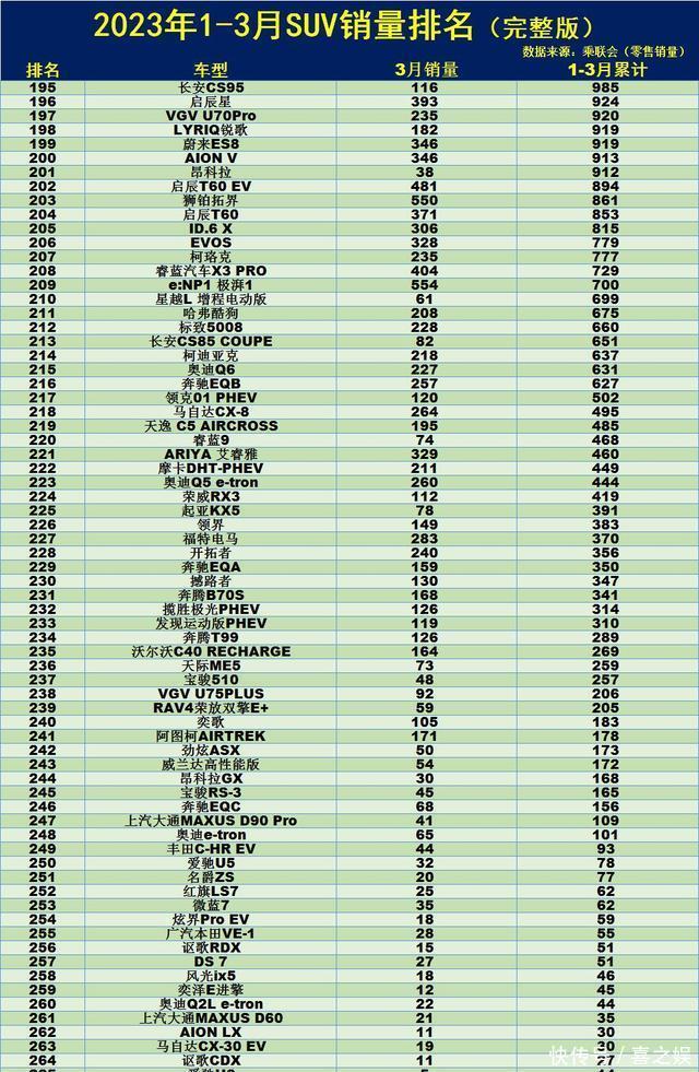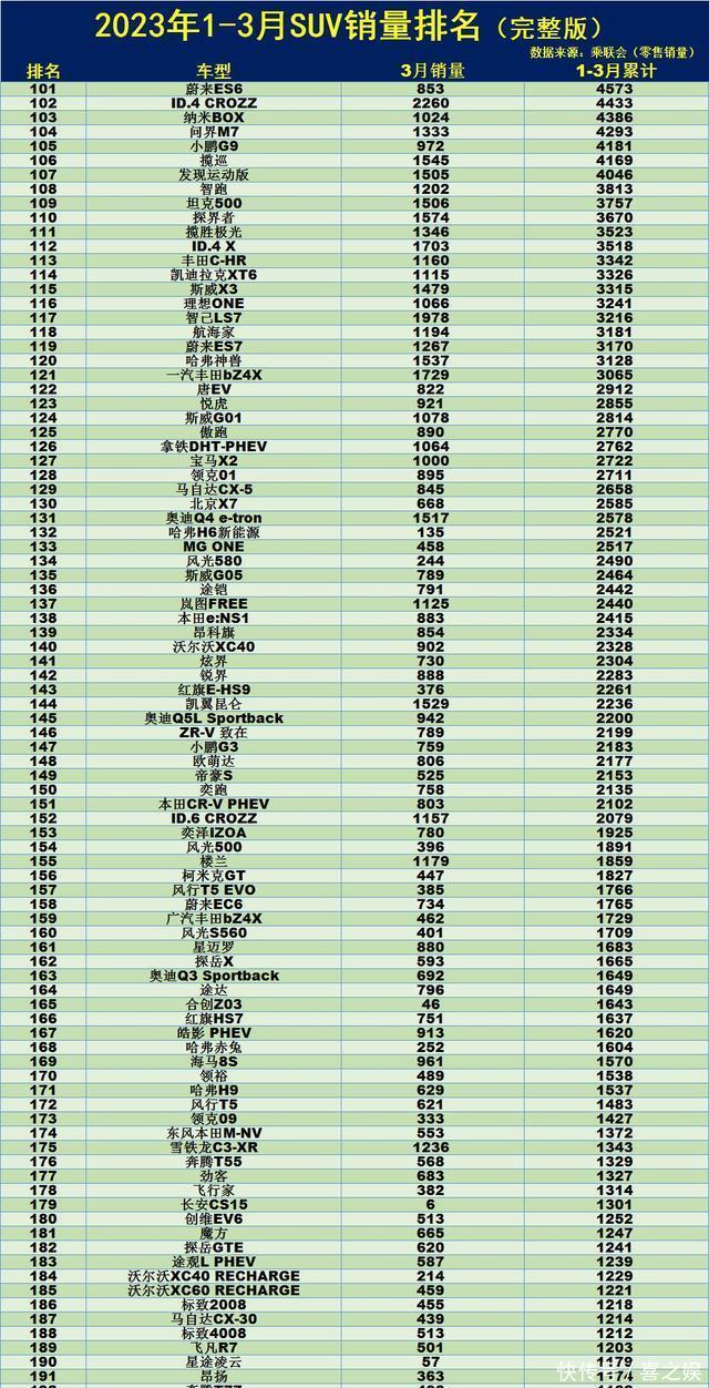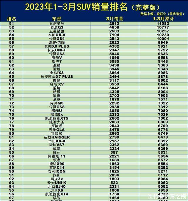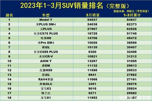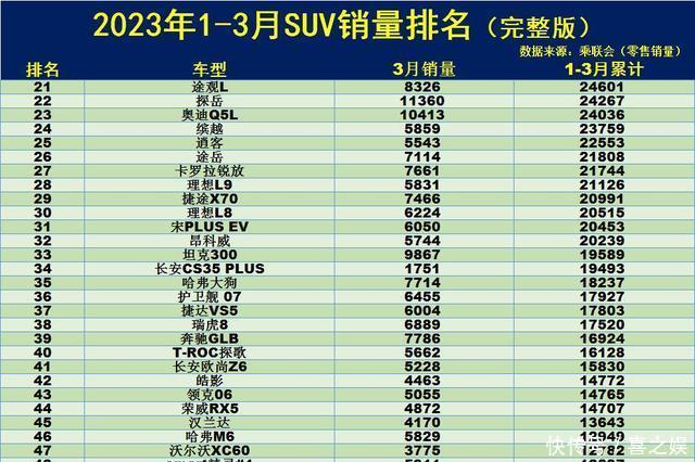 心酸!1-3月SUV销量榜:CR-V第9,途观L第22,未破千的车型有73款